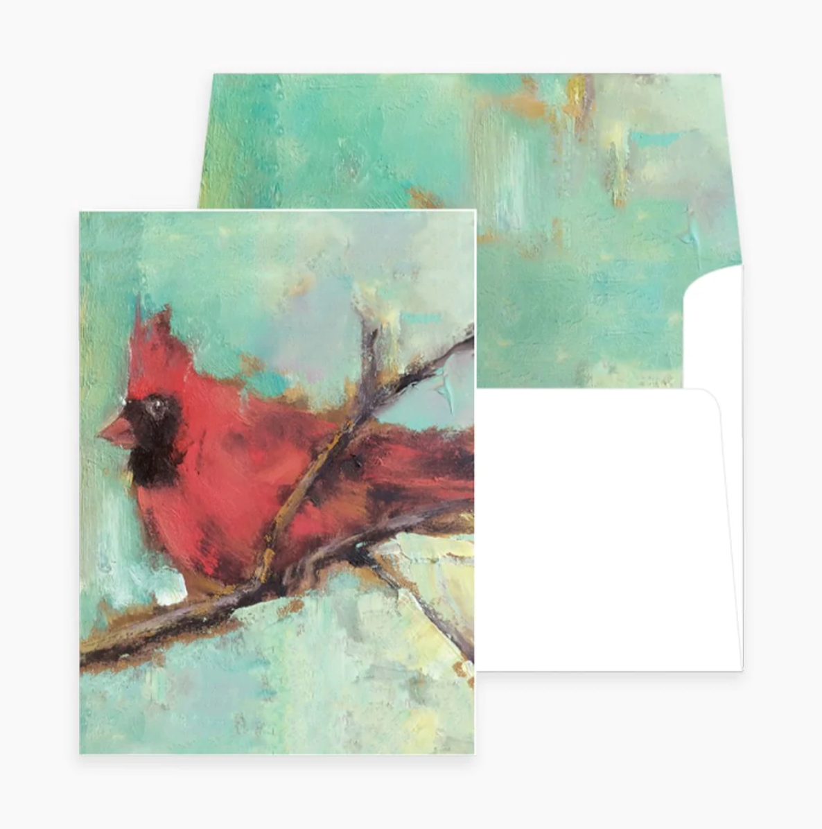 Everyone loves a handwritten note and our beautiful fine art notecards are a blank canvas for your words. Whether you are sending a note of congratulations, encouragement or sympathy, our notecards share your thoughts with beauty and flair. Our You Are Near Notecards feature the same cardinal artwork throughout each pack and they also include a beautiful coordinating lined envelope. There are a total of 14 notecards and envelopes included in each pack. Notecards are a 3.75 x 5.25 inch fold over card, blank inside.